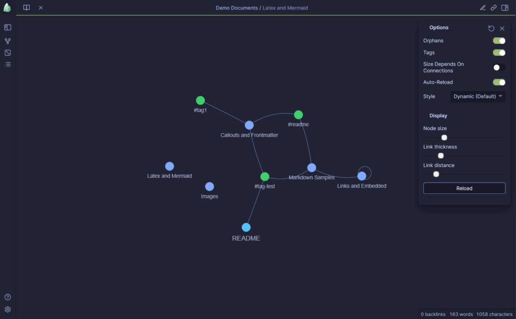 In version 1.4, I introduced the graph view. There is now a new sidebar on the right-hand side that displays the current graph and directly linked nodes.
