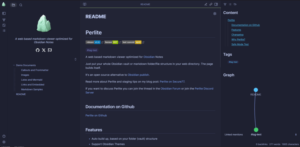 Perlite is a web-based Markdown viewer optimized for Obsidian Notes.