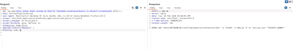 This creates a new registry key and adds the C2 script to autostart. This was the last command I was able to retrieve from the C2 server.