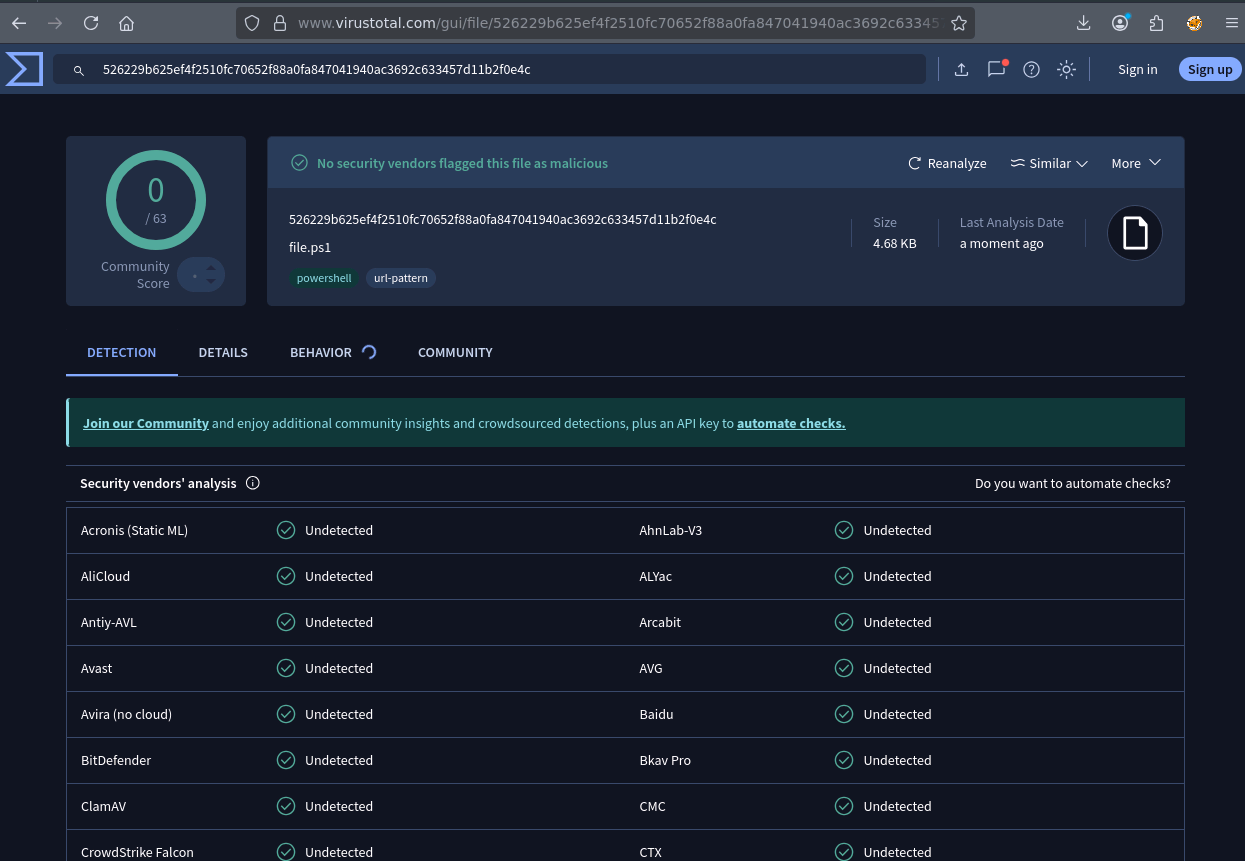 - file.ps1 (526229b625ef4f2510fc70652f88a0fa847041940ac3692c633457d11b2f0e4c)