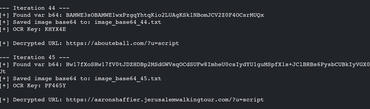 This allowed me to retrieve 44 Stage2 URLs until the Stage1 server was no longer accessible. I checked some of these URLs and it seems that most of them are compromised WordPress sites.